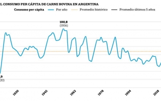 Según la Bolsa de Comercio de Rosario, en 2021 el consumo por habitante fue de 47,8 kilos; en 1920 ese indicador se había ubicado en 46,9 kilos; fuerte caída en la cantidad de vacas por habitante. El consumo de carne vacuna cerró 2021 con el mínimo registro en 100 años, según un informe realizado por la Bolsa de Comercio de [...]